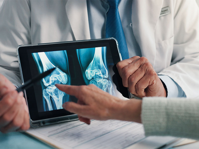 治療方法は、軟骨のすり減り具合や関節変形の程度、年齢、日常生活で求められる動作などを総合的に判断して選択します。軟骨がある程度保たれている場合は、まず手術を行わない保存的治療が中心となり、痛み止めの内服、リハビリ、ヒアルロン酸注射、足底板の調整などが有効です。これらで十分な改善が得られない場合や、変形が進んで生活に支障が出ている場合は手術治療を検討します。比較的変形が軽い方には高位脛骨骨切り術が、O脚・X脚が著しく進んだ方や強い痛みが続く方には人工膝関節置換術が適応となります。症状に合わせて最適な方法をご提案します。